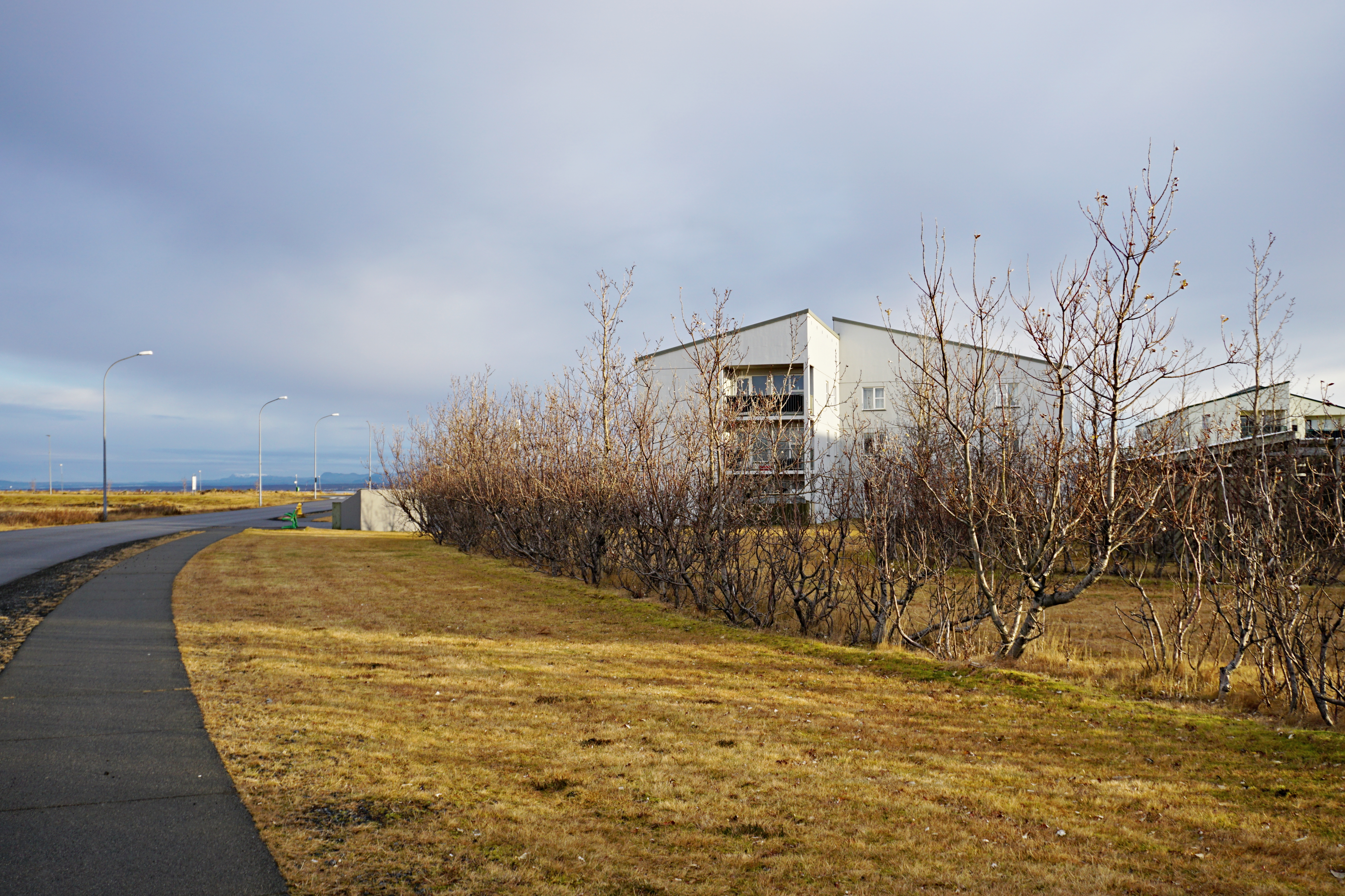 Zooming out a bit, this is what the area looks like. Ásbrú is located in the northwestern part of the peninsula. It was difficult to determine the boundaries from the east and area that is occupied, we can say that it is about 4.484101 square kilometers (including empty spaces around). The peninsula is crossed by a high-speed road Reykjanesbraut, so for this reason Ásbrú also remains cut off (in a sense) from Keflavik and Njarðvík, although these areas are interconnected because people living in Ásbrú shop outside it.
