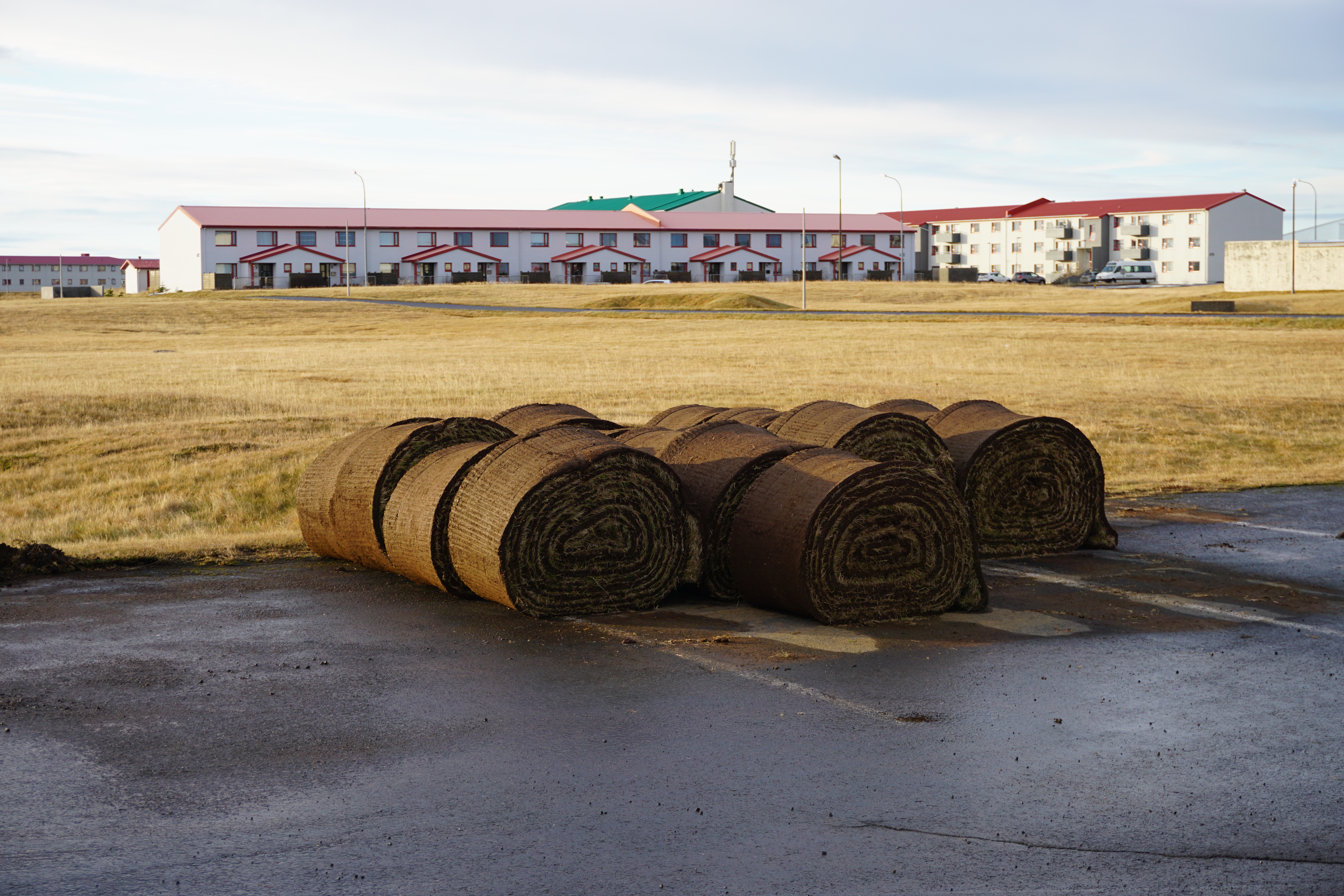 The vast majority of the Ásbrú is covered with rolled grass but there are places where lava and moss are present. Around 18 % of the area is a paved surface. Usually these are huge parking spaces.