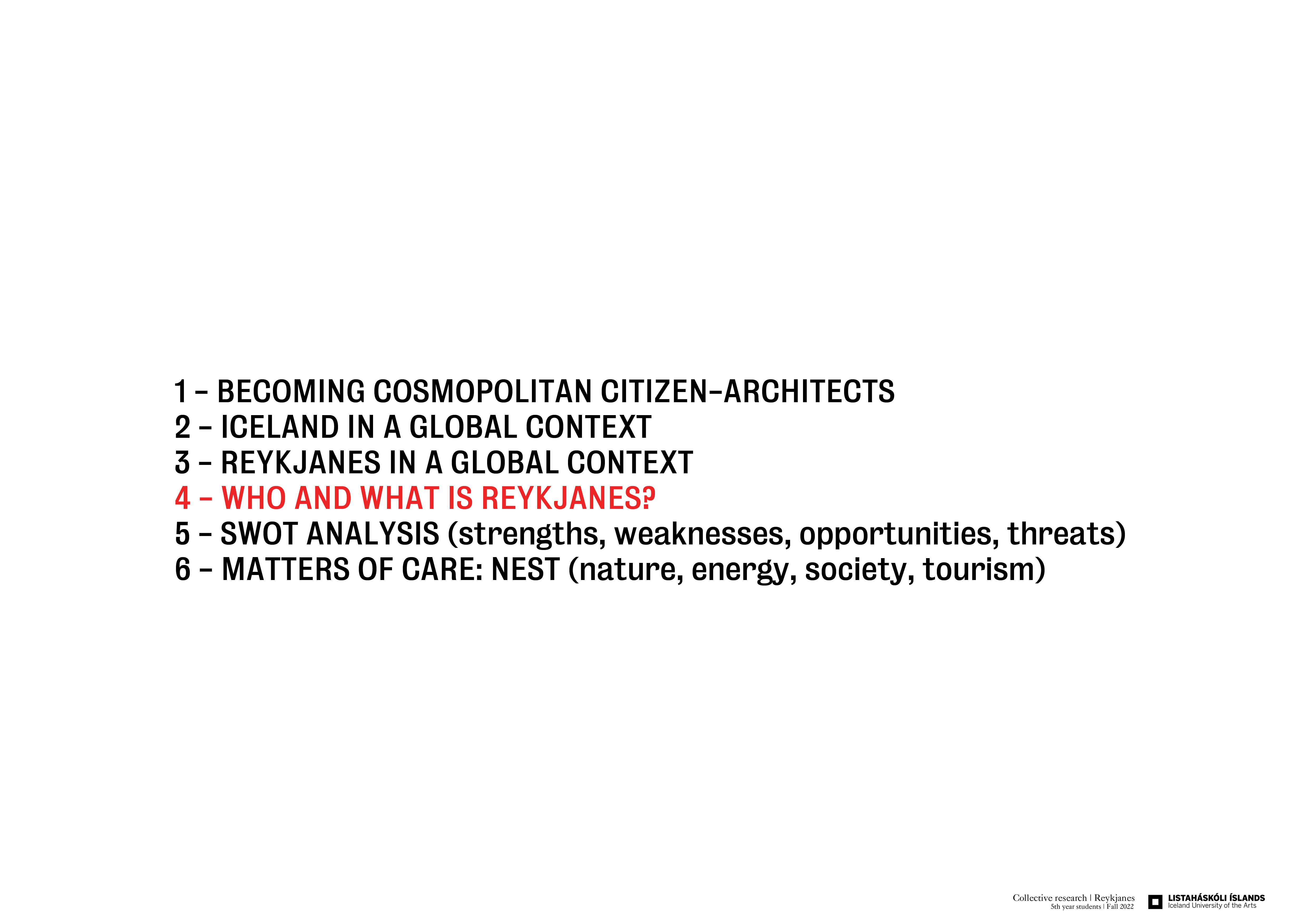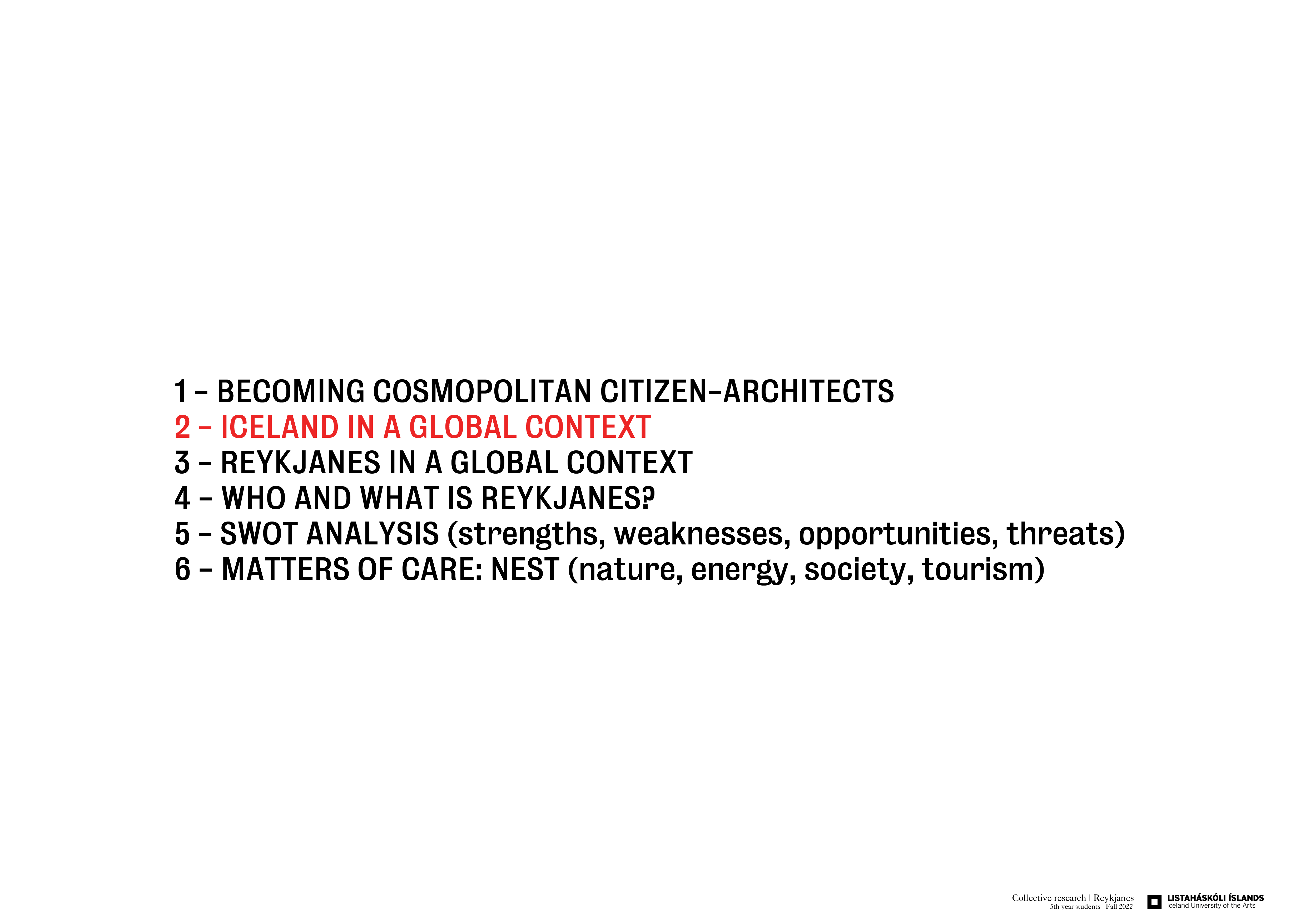 The Reykjanes region is the object of our studies and investigation for this Autumn term. Reykjanes is the gateway to Iceland, it is a place suspended between North America and Euro-Asia, a place of global interest.